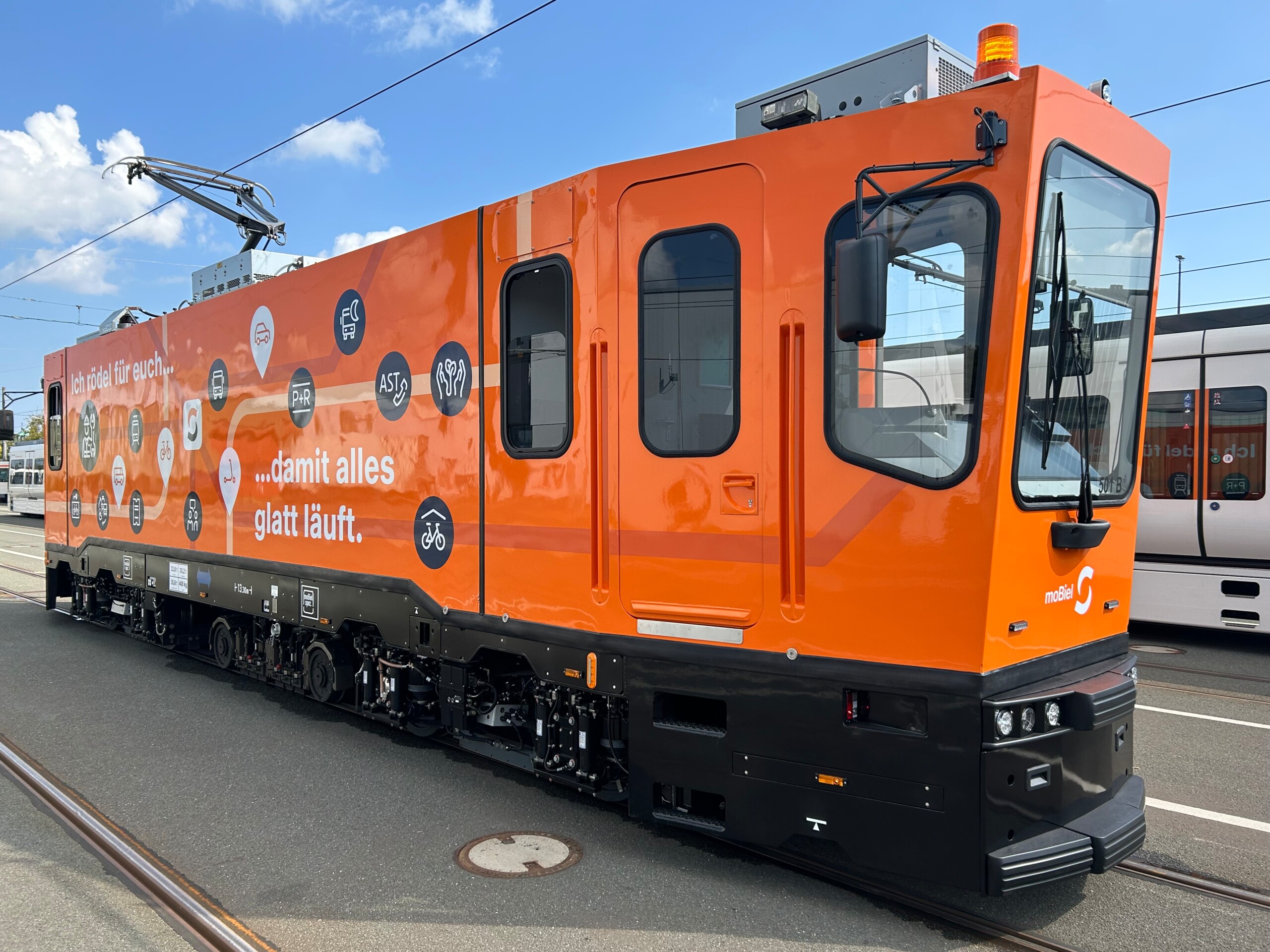 Das Schienenschleiffahrzeug hingegen ist speziell für präventive Schleifarbeiten und die Reinigung von Schienen entwickelt. Es ermöglicht geräuscharmes Arbeiten bei minimaler Belastung für das Umfeld und sorgt für einen reibungslosen Betrieb im städtischen Schienennetz. Beide Fahrzeugtypen stehen für Flexibilität, Effizienz und Anpassungsfähigkeit, um den spezifischen Anforderungen des Nahverkehrs gerecht zu werden.
