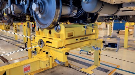 Dieser Aufbau ermöglicht einen schnellen und einfachen Drehgestell-Wechsel bei angehobenen Fahrzeugen. Dank der flexiblen Bewegungsmöglichkeiten können Drehgestelle effizient und präzise ausgetauscht werden, was die Wartung erheblich erleichtert.