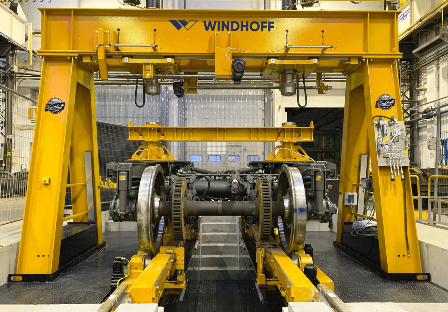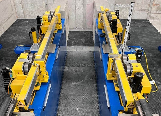 Zwei elektromechanische Prüfzylinder sind mit vertikalen Positions- und Kraftmesseinrichtungen ausgestattet. Dies ermöglicht eine effiziente Prüfung der Radlastverteilung bei verschiedensten Drehgestell-Typen und Belastungen.