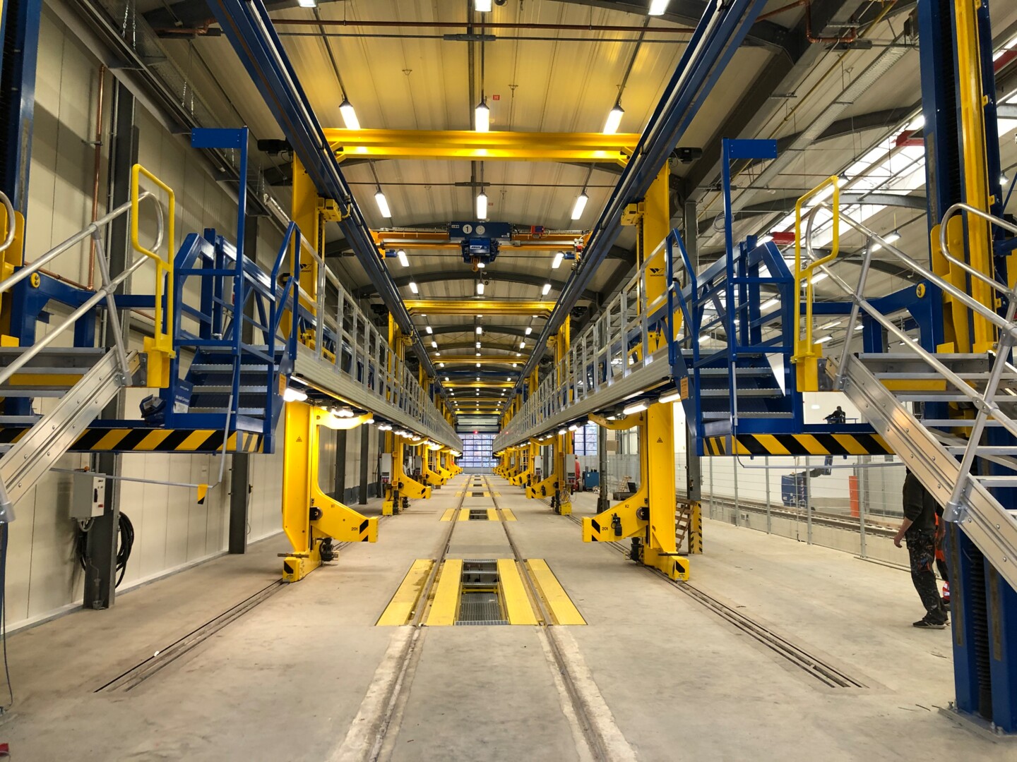 Die Kombination aus höhenverstell- und ausschiebbaren Dach-/ Seitenarbeitsbühnen, Hubvorrichtungen seitlich oder unterhalb des Fahrzeuges sowie wahlweise mit einem Kran oberhalb verspricht eine maximale Vielseitigkeit beim Warten & Instandhalten der Fahrzeuge. Verschiedene Arbeiten sind so an verschiedensten Baureihen parallel möglich.