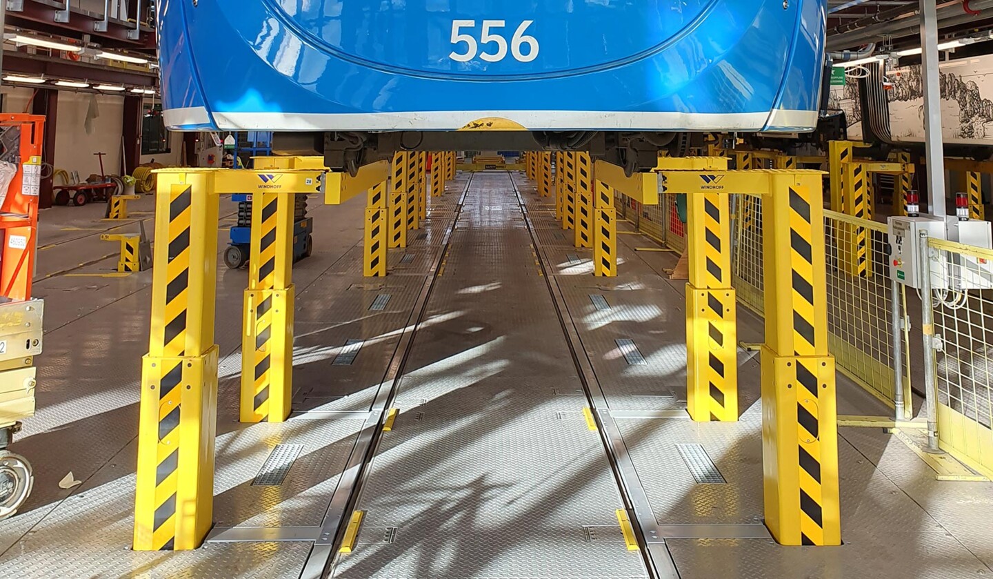 Our lifting systems can be customised according to customer requirements: Whether cantilever designs for changing bogies, direct rail bridge or rail beam systems, telescopic lifting systems or lifting individual bogies by the wheel or axle bearing - all variants can be realised.